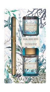 Ein kühler, sauberer Duft und eine friedliche Szene in Aquamarinen und Blau drücken die Gelassenheit der Küste aus.